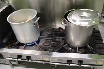 高効率のトップバーナー搭載ローレンジ スープ仕込み中…
