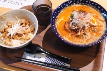 千葉東金小川屋味噌海老ラーメン (左)千葉県産匠味豚使用ミニチャーシュー丼