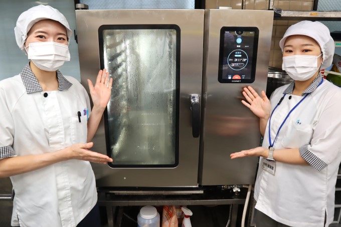 「焼き魚は焼きムラがないし、焼売は皮が乾かない。機器の立ち上がりも以前より早くなりました」と話すのは、管理栄養士の古西様と木村様。現在は主に蒸し物や焼き物の調理にスチコンを活用しており、スチコンで蒸した野菜を鍋で炒めるなど、作業効率の向上にもつながっているという。