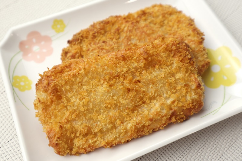 - オイルスプレーをふったノンスティック20mmに、個数分に切り分けた⑤を並べ形を整えます。