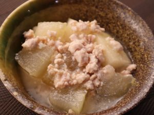 - B)を鍋に合わせて煮立たせ、煮汁を作ります。